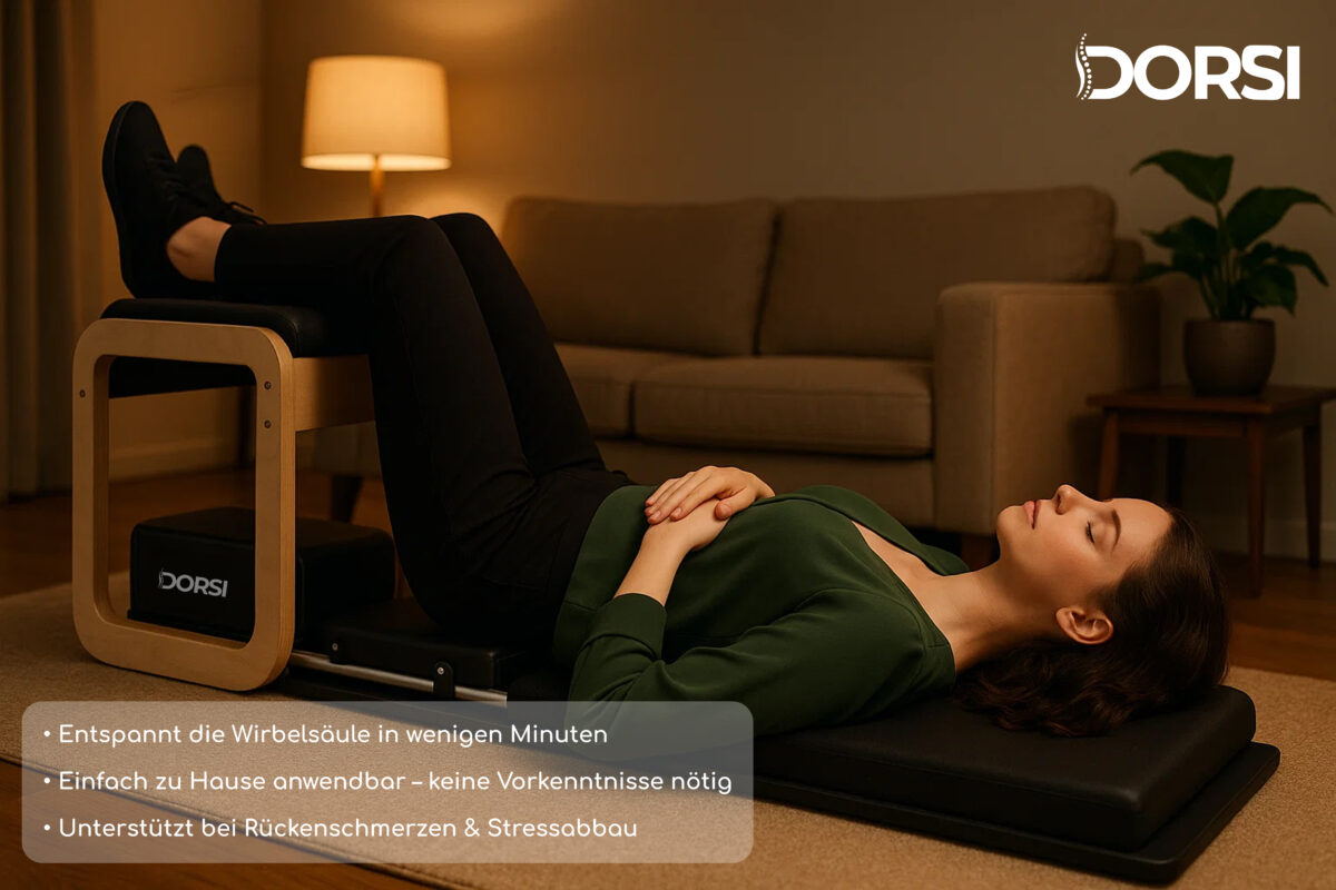 DORSI Dynamics entwickelt ein intelligentes Rückengesundheitssystem, das mithilfe von KI und Biofeedback eine sanfte Wirbelsäulendekompression anleitet. Die verbundene App passt jede Sitzung anhand von Echtzeitdaten wie Atmung und Herzfrequenzvariabilität individuell an.